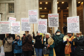 Earlier, many participants in the vigil outside the MoD had taken part in an ecumenical Ash Wednesday morning service for creation at St John's Church in Waterloo. Afterwards these prayers at the MoD they walked on to Parliament, where they joined the ten day 24 hour vigil taking place there, for the environment. Campaigners there are calling on the UK government to stop issuing new licences for fossil-fuel exploration in UK waters. And - increasingly, the carbon footprint of military activities is receiving attention. Military emissions account for more than the greenhouse emissions of aviation and shipping combined.